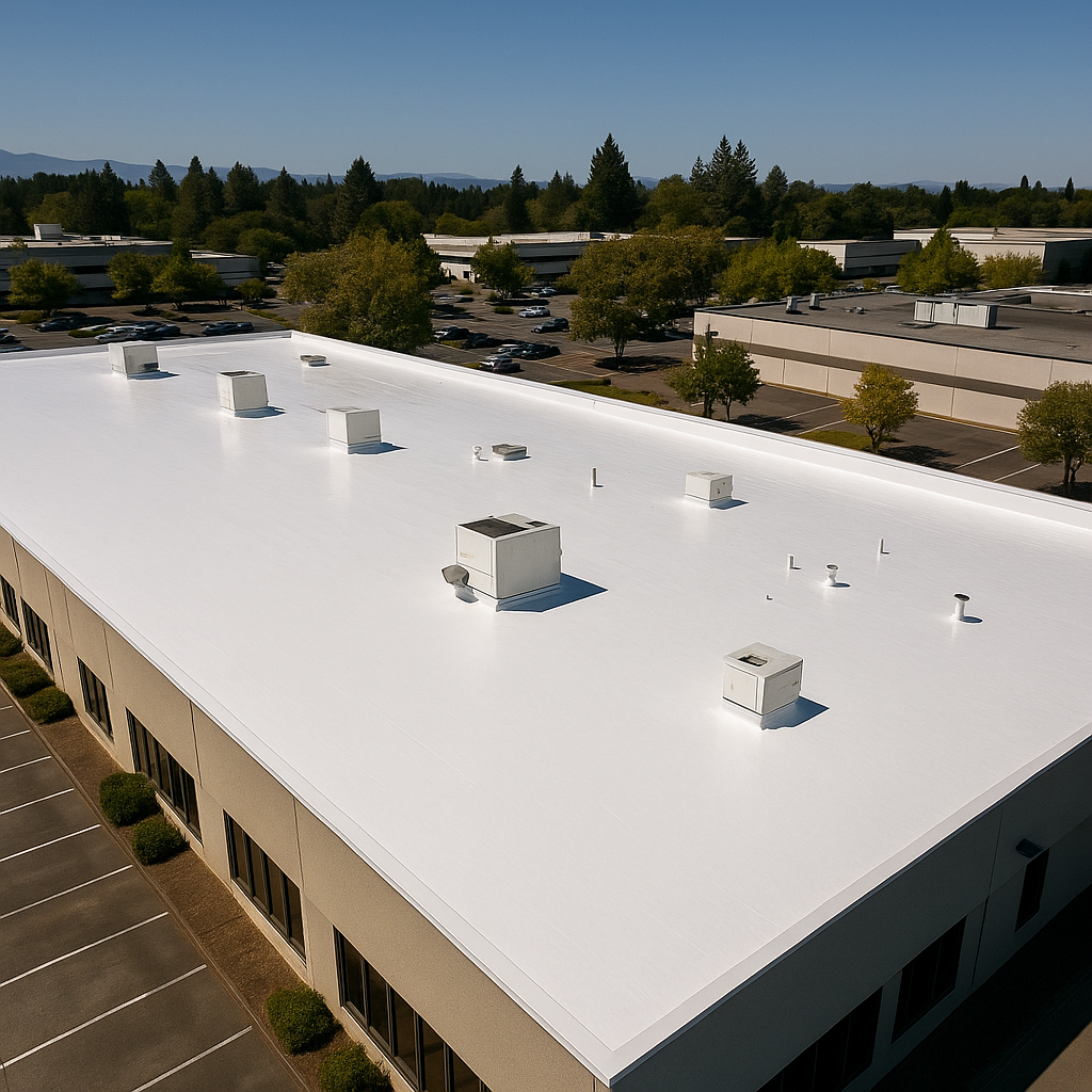 At Rooster Roofing, we help Salem businesses avoid expensive roof replacements with protective commercial roof coatings. Our systems stop leaks, reflect UV rays, and strengthen aging roofs — including TPO, EPDM, metal, and more — while cutting cooling costs and extending roof life by over a decade.