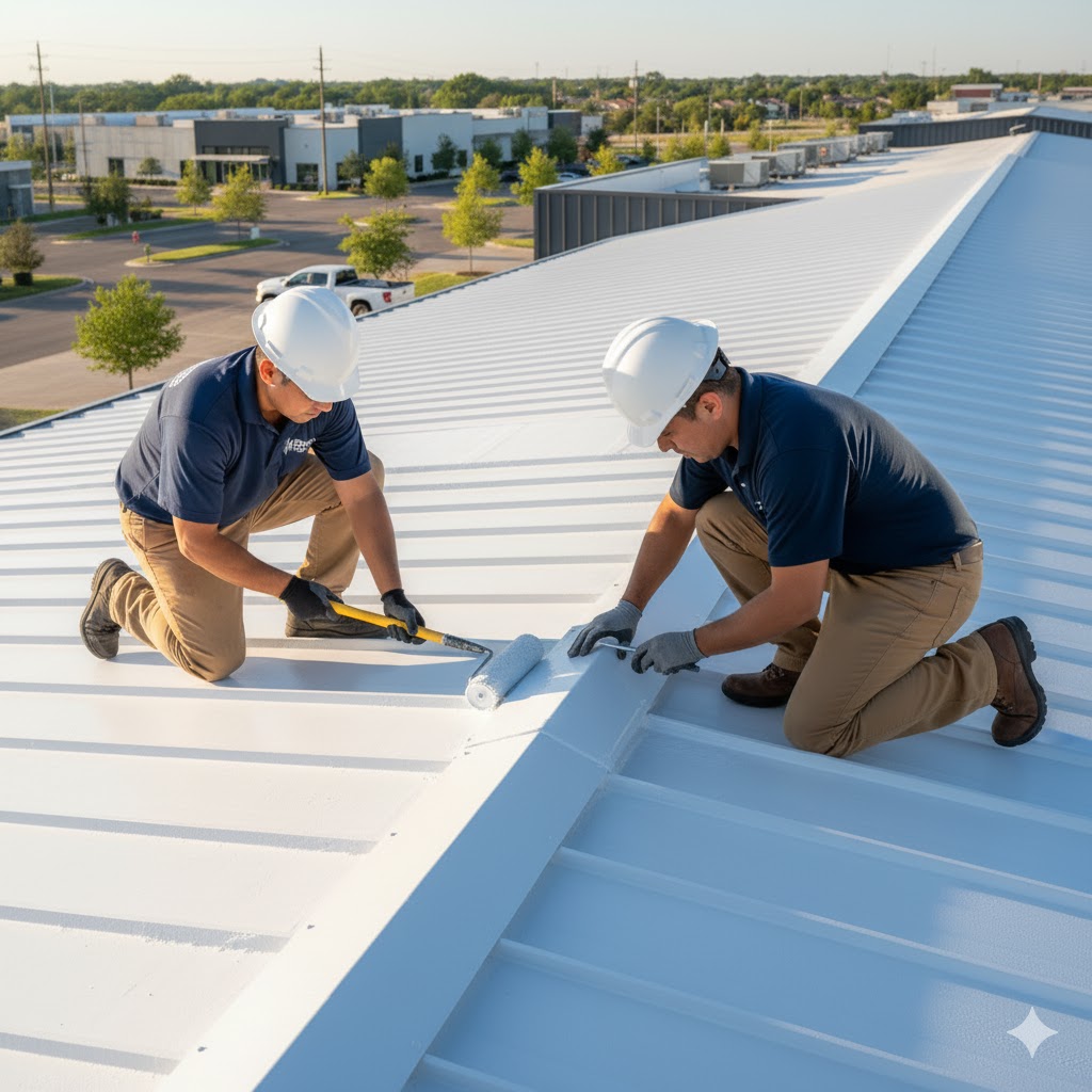Metal Roofs — Stop rust, seal fasteners, and eliminate heat absorption.